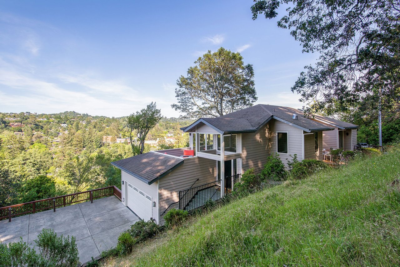 AMAZING NEW PRICE! Gorgeous, light-filled home with 3 bedrooms and nursery/office on the same floor PLUS detached Studio with its own garage - perfect for home office, au pair or guests. Great indoor/outdoor flow and layout make this home ideal for family living and entertaining. Picturesque views from many rooms and flooded with natural light throughout. Enjoy the serenity and privacy this home offers, yet easy access to the shops and dining of downtown Ross, Kentfield and some of the best Marin has to offer. Situated on large, private lot. 2 garages. Easy access to 101 and Ferry. Kentfield Schools.
